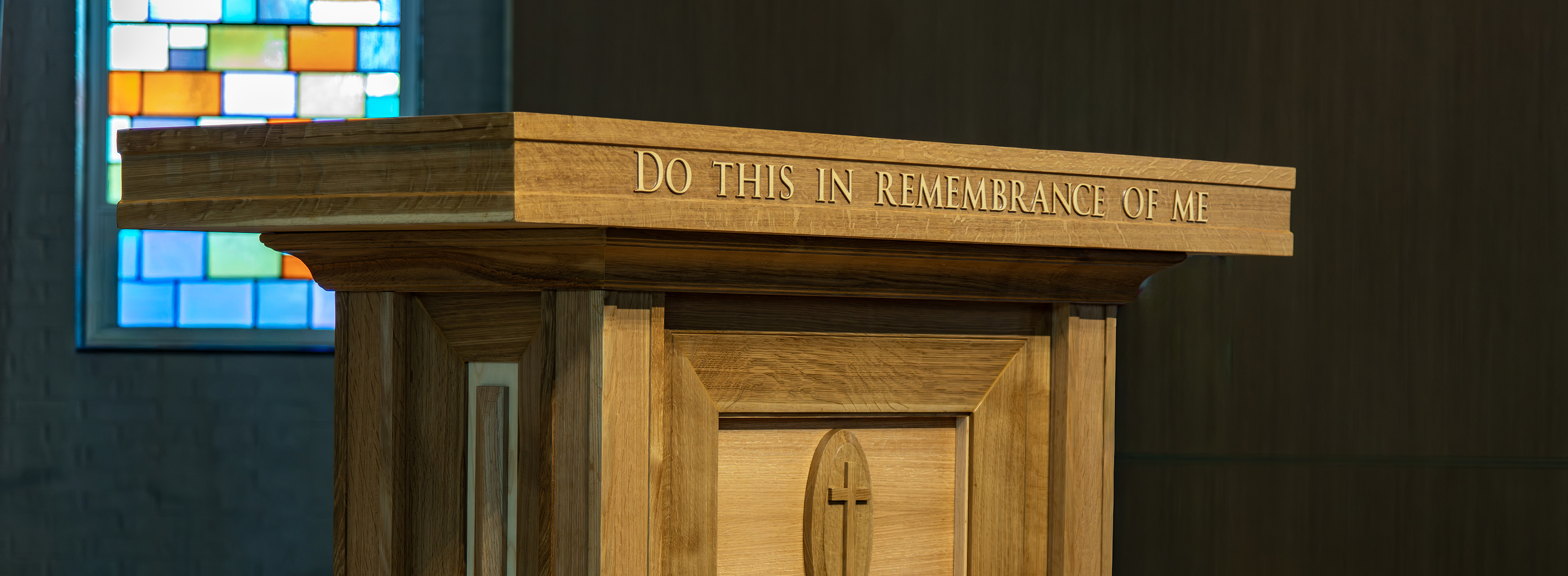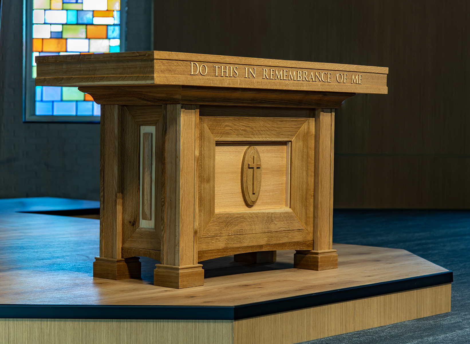 The Communion Table. Natural wood gives the furnishings a living warmth and the use of quartersawn white oak provides a rich depth to these pieces.