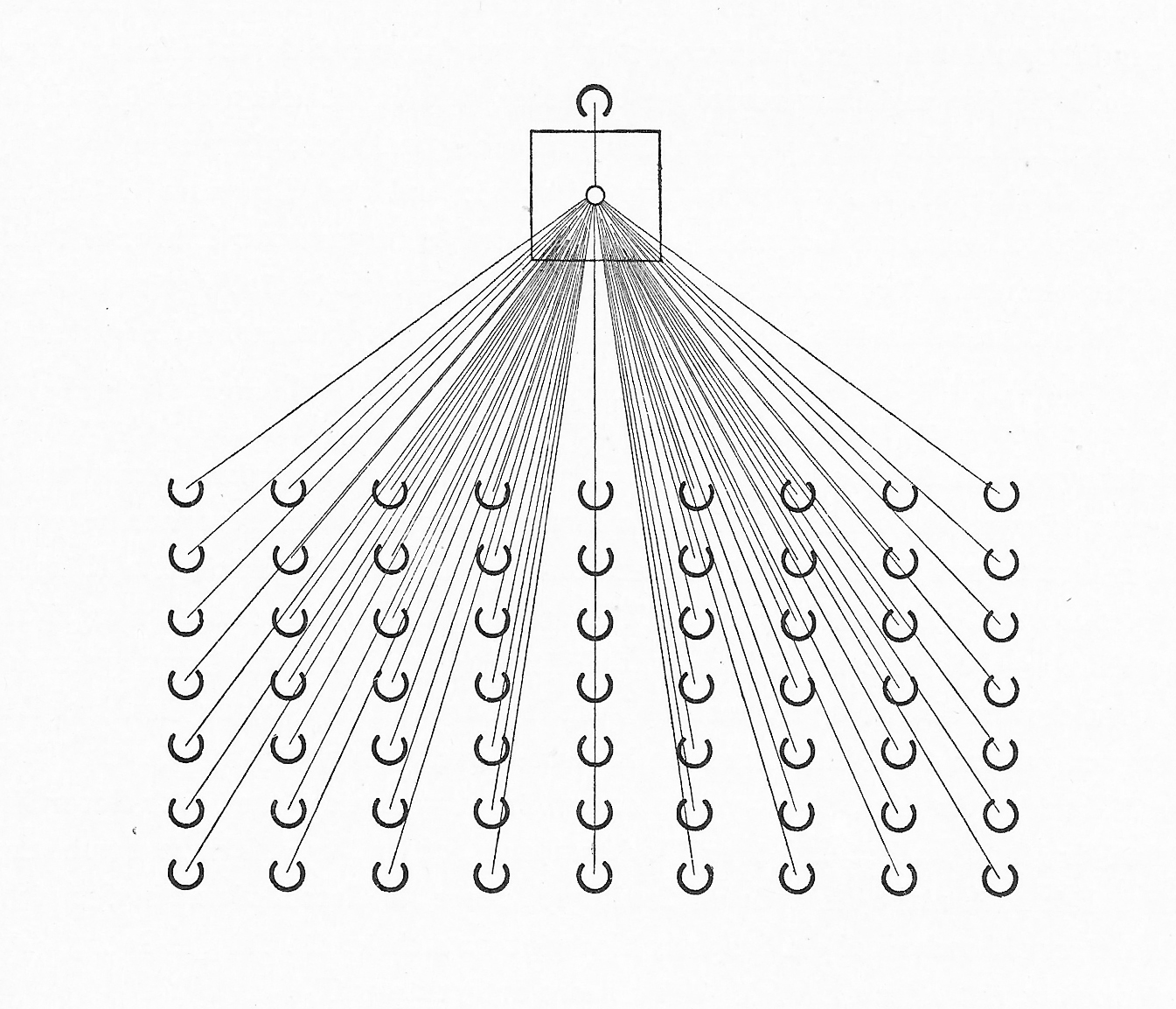 First among these is the chain. (4) The chain has no center, nor can it organically grow. Its abstract nature is such that new elements can only be ‘welded’ onto its ends. Each link of the chain has no awareness of a link before or behind, or of the whole. Its only ‘link’ is with that next to it, and even then, the individual link does not look left or right, but only forward. Even when woven into a net with successive chains, the individual “experiences nothing” (5) While the net continues to expand by accretion, this expansion changes nothing in the individual link. There is, in effect, no spiritual movement to a higher plane. The chain and net are purely abstract; “it lacks the powers of organic growth… it needs people only as the material for such uniformity.” Only when the Cross is added to the form is there opportunity for advancement, and even here, that opportunity is limited. (6)