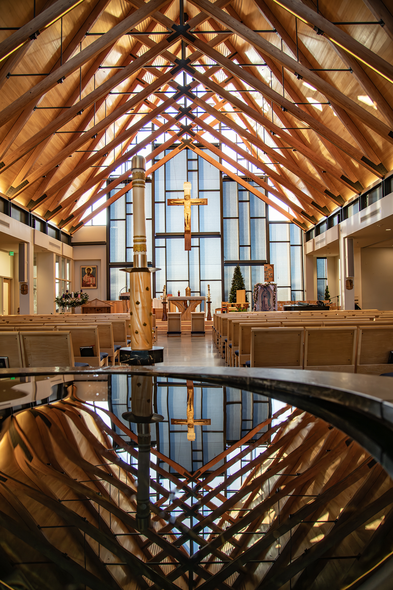 It is also important to recall that until after the Reformation, pews were not part of the longitudinal basilica design. The congregation were an organic body gathered near the chancel or before the choir. (9) Because of this, there was never the experience of regimentation which exists in modern longitudinal hall churches. One can still see this most ancient configuration in many European churches. Unfortunately, even older churches in North America suffer from the congestion and regimentation created by pews. This presents challenges of liturgical theology and practice in addition to contemporary custom and expectation. An effective Liturgical consultant and designer can find ways to reduce the unfortunate aspects of pews at the same time respecting contemporary inclinations.